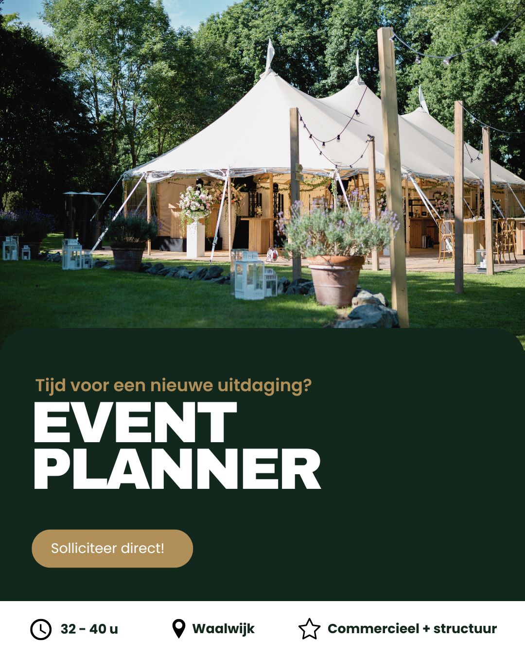 Werk mee aan festivals, bruiloften en bedrijfsfeesten met onze hoogwaardige designtenten. Afwisselend werk, een fijn team en elke dag een nieuw avontuur. Bekijk onze vacatures nu!
